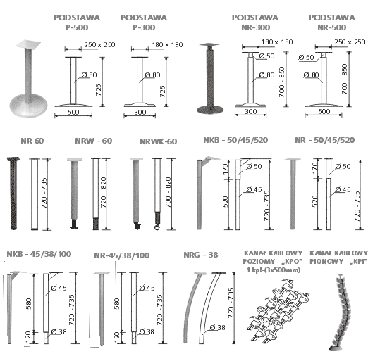 Konstrukcje metalowe - Nogi, Podpory